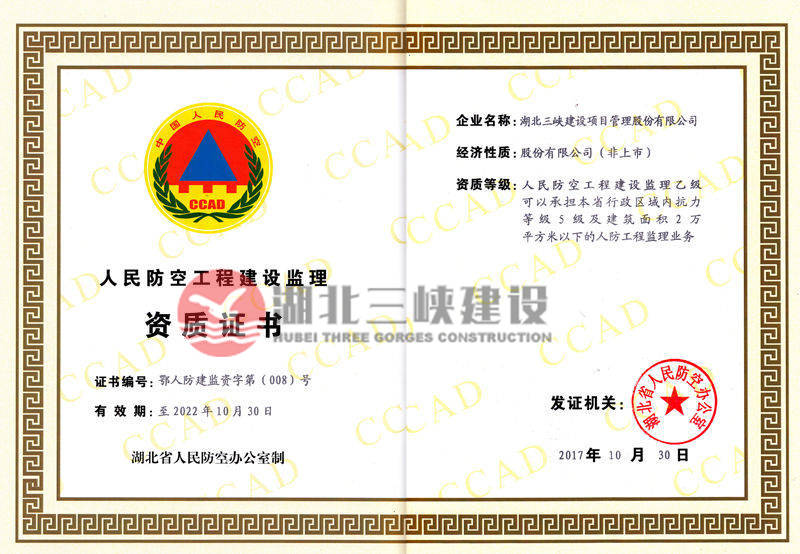 | 人民防空工程建設(shè)監(jiān)理資質(zhì)證書 |