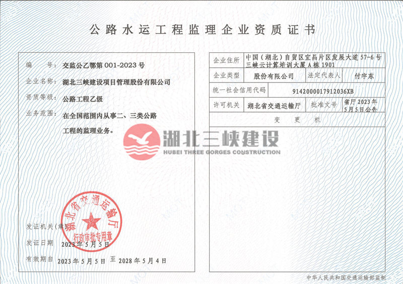 公路工程監(jiān)理企業(yè)資質(zhì)證書