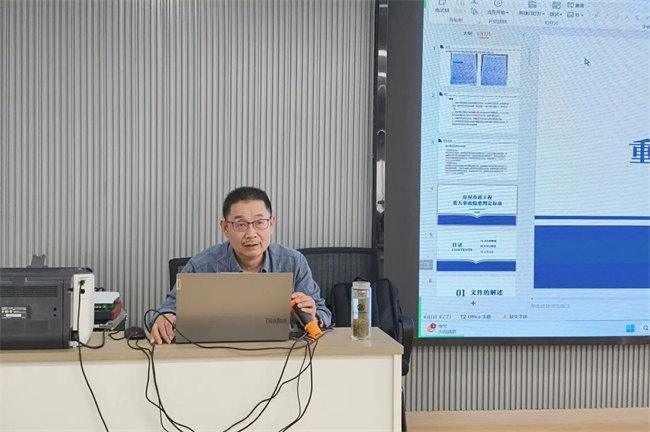 公司技術(shù)負(fù)責(zé)人謝忠安通過(guò)條文與案例分析相結(jié)合的方式,對(duì)《房屋市政工程重大事故判定標(biāo)準(zhǔn)》進(jìn)行了詳細(xì)解讀,有效增強(qiáng)了全體與會(huì)人員“風(fēng)險(xiǎn)就是隱患,隱患就是事故”的責(zé)任意識(shí)和重大隱患判定的識(shí)別和處置能力。