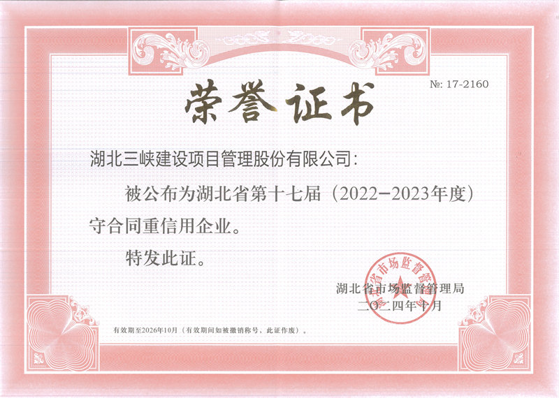 近四十年以來,三峽建設(shè)人恪守“科學(xué)、公正、誠信、開拓”的經(jīng)營宗旨,秉持“通過過程控制實(shí)現(xiàn)投資價值最優(yōu)化”的增值理念,踐行“讓業(yè)主滿意、為社會盡責(zé)、使自己安心”服務(wù)原則,著力打造“具有增值服務(wù)價值和社會公信力”的工程建設(shè)全過程管理咨詢企業(yè),努力為客戶提供更精準(zhǔn)的技術(shù)管理服務(wù),努力為員工創(chuàng)造更美好的人生平臺,努力為社會回饋更有益的正能量,廣泛得到項(xiàng)目業(yè)主和建設(shè)行政管理部門的高度信任和支持。公司連續(xù)連續(xù)二十年獲湖北省先進(jìn)監(jiān)理企業(yè)及湖北省守合同重信用企業(yè),被中國建設(shè)監(jiān)理協(xié)會、中國建設(shè)工程造價管理協(xié)會評價為“AAA”信用等級,被湖北省招投標(biāo)協(xié)會評價為“AAA”信用等級,被湖北省認(rèn)定為高新技術(shù)企業(yè),公司黨支部被中共宜昌市西陵區(qū)委授予優(yōu)秀基層黨組織榮譽(yù)稱號。